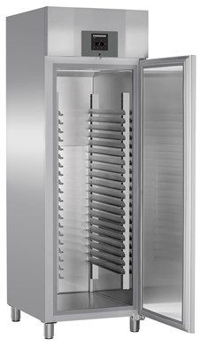 Шкаф холодильный Liebherr BKPv 6570 используется в хлебопекарных и кондитерских цехах, на предприятиях общественного питания. Снаружи корпус изготовлен из нержавеющей стали. Внутри - хромоникелевая сталь. 20 пар L-образных направляющих под противни 600х400 (противни в комплект не входят) Встроенная эргономичная ручка. Электронная панель управления. Цифровой указатель температуры. Интегрированный замок. Объем: общий – 602 л, полезный – 365 л. Откидывающаяся вверх съемная крышка компрессорного отделения. Предупредительный сигнал при повышении температуры. Регулируемые по высоте ножки.В интернет-магазине «МТО-ОНЛАЙН» вы можете купить этот сертифицированный товар: Холодильный шкаф BKPv 6570-43 001 в розницу, по оптовым ценам. В категории Шкафы среднетемпературные, этот товар является одним из лидеров по продажам. Покупатели ценят бренд Liebherr за его высокое качество и функциональность. На данной странице товара: Холодильный шкаф BKPv 6570-43 001, вы можете ознакомиться с описанием, изучить фотографии, характеристики и отзывы покупателей. На весь ассортимент Liebherr предоставляется официальная гарантия.